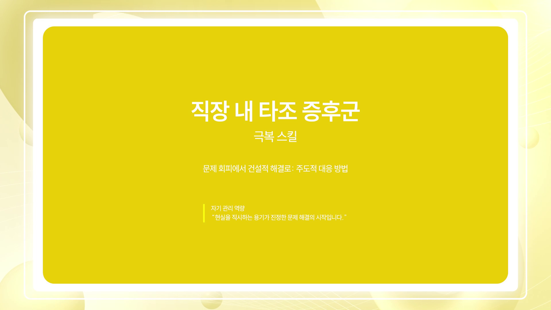 심리 기반의 SKILL LEARNING을 기반으로 업무 고성과를 위한 6대 핵심 영역별 스킬 카테고리로, 개인 차원의 성과를 위한 최적화된 업무구조 및 범위입니다.